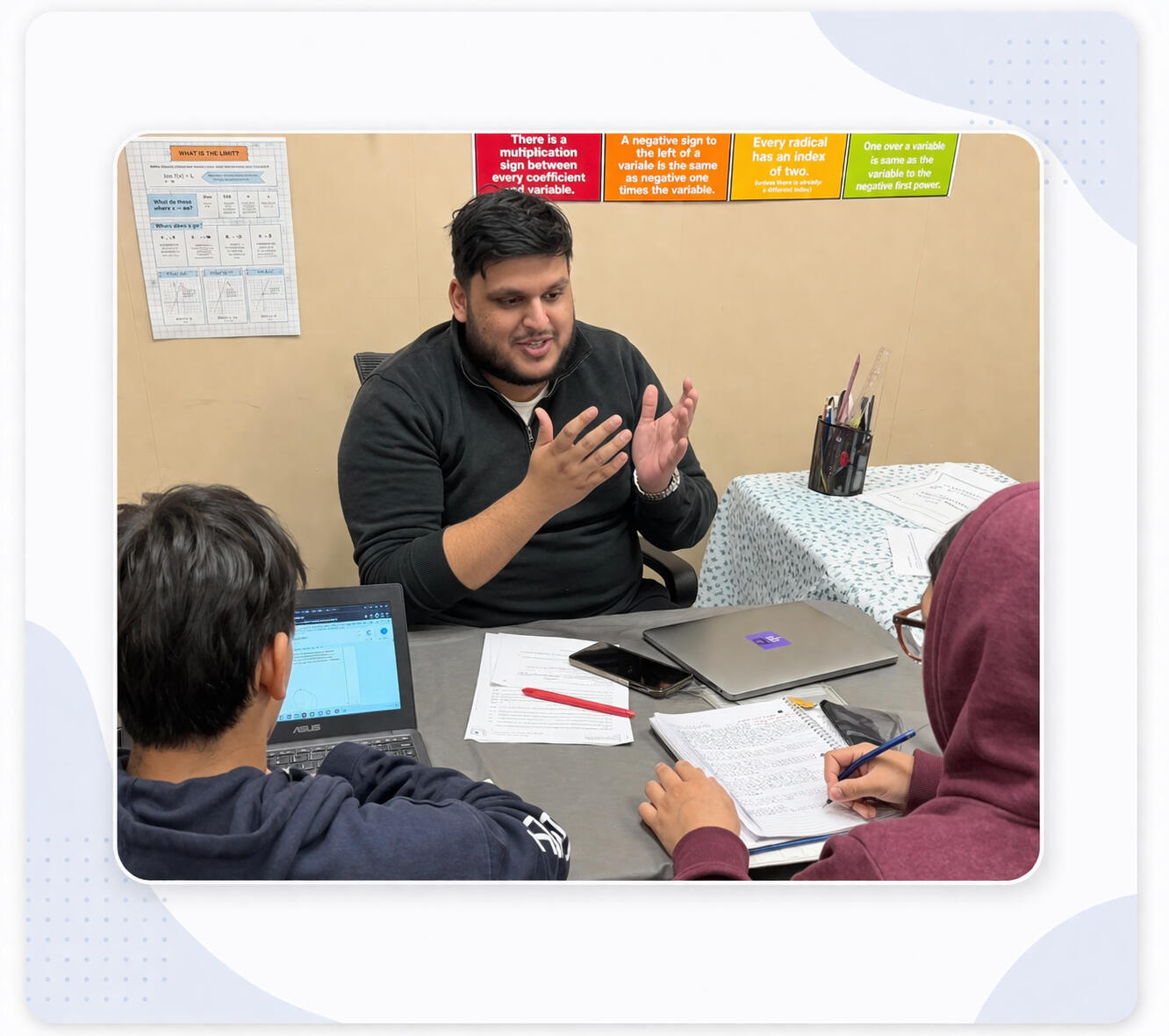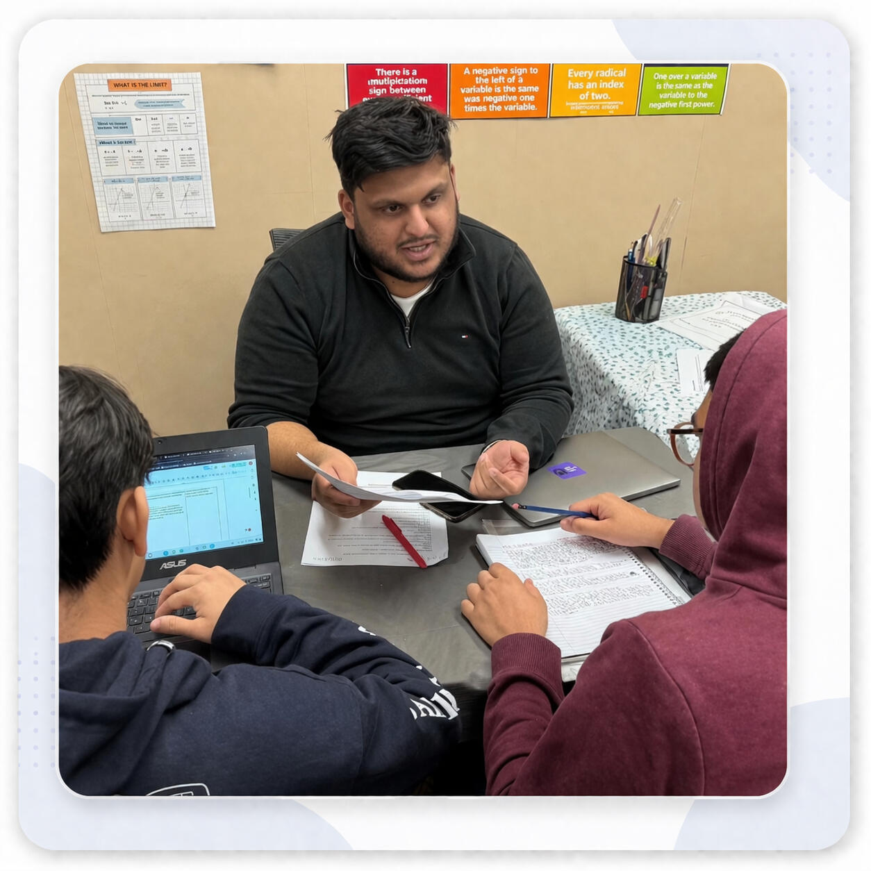 Students apply concepts until they can solve questions independently and confidently.